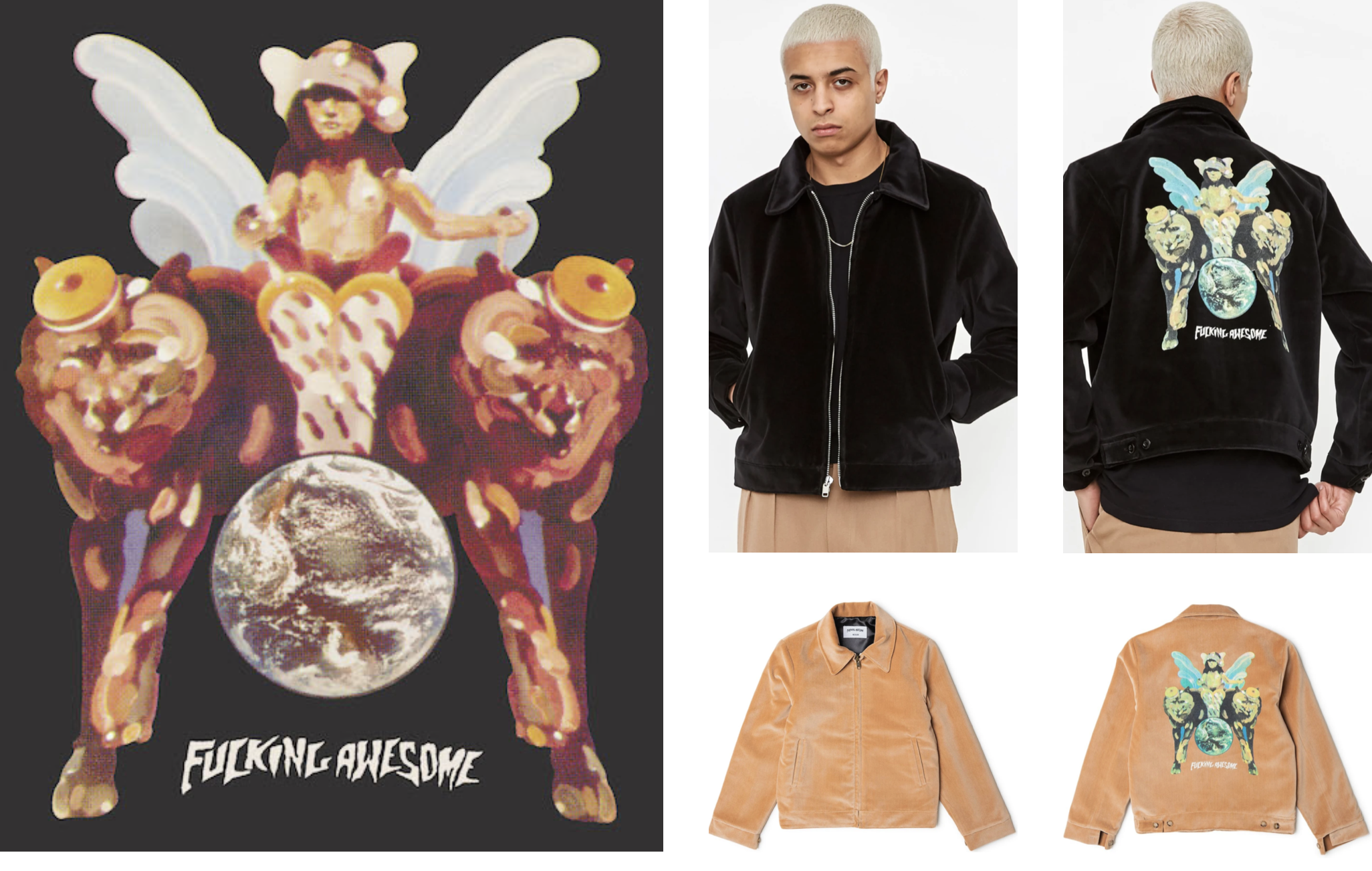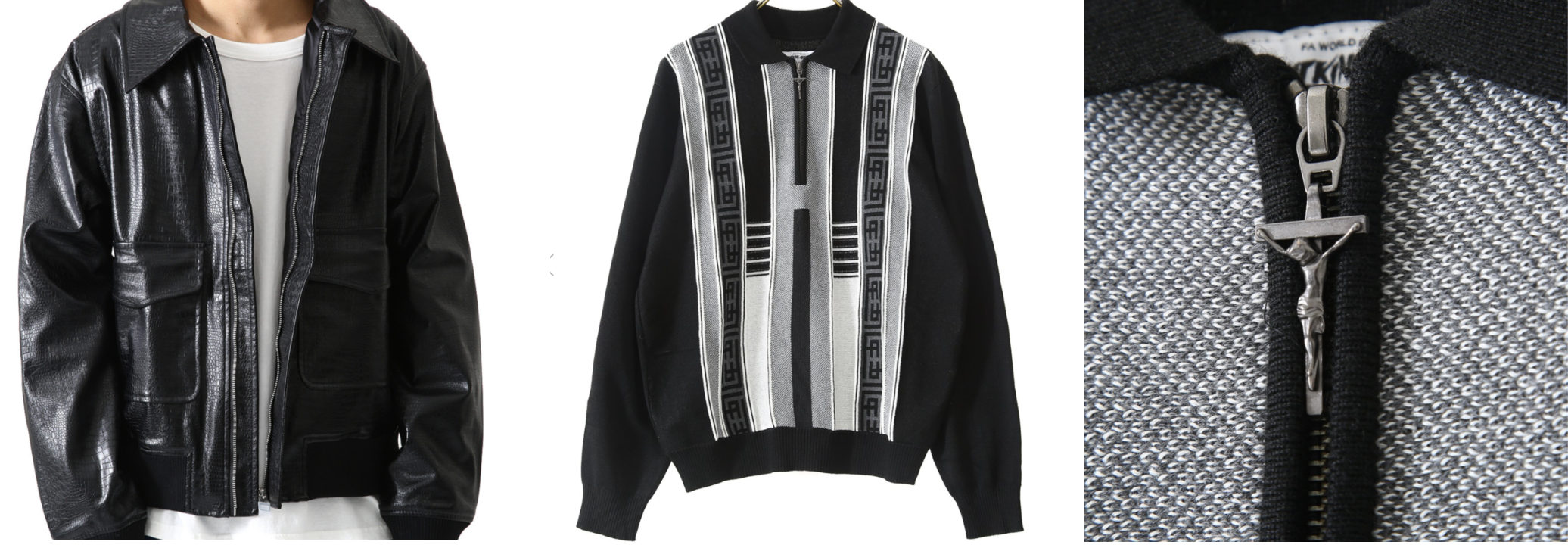 Canvas Western Jacket, 1979 Black Velvet Painting Jacket, Car Seat Gator Vinyl Jacket and Milano Sweater w/ Crucifix Zip, Fucking Awesome, 2019